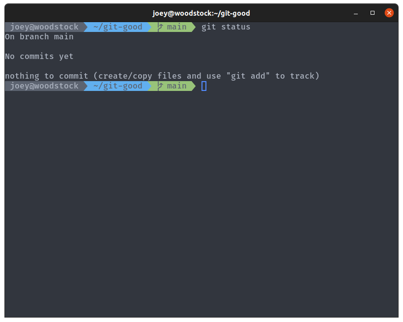 Open up a terminal. We're going to do as much as we can from the command line so you can get a bit of practice with it. Create a new directory called git-good with mkdir, change directory into it using cd, and then use git init to make it a repository.